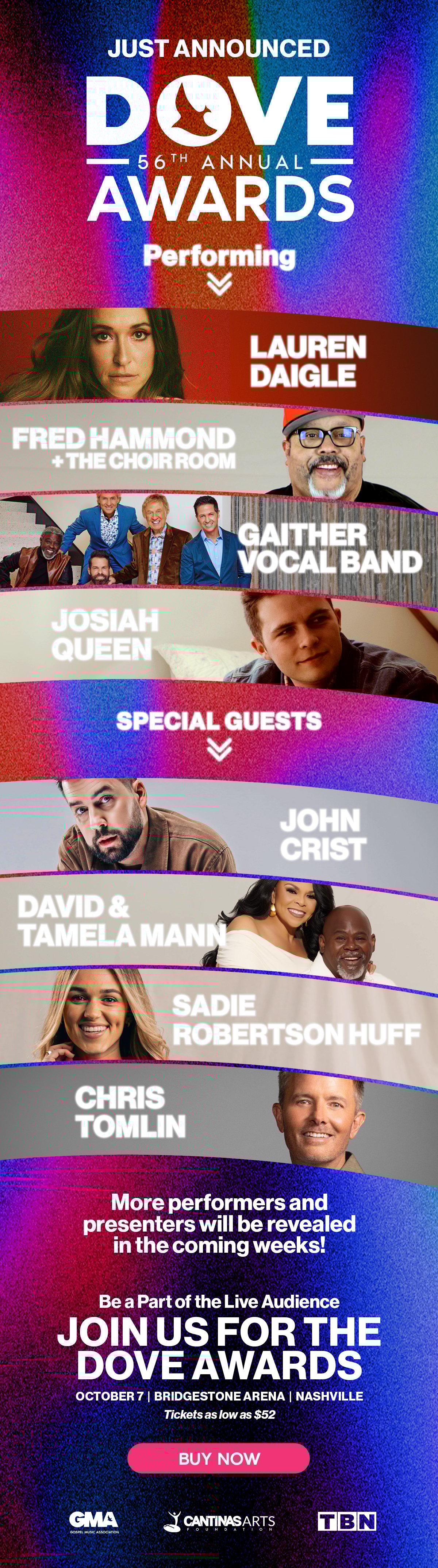 Join us for the 56th Annual GMA Dove Awards live on October 7th at Bridgestone Arena.