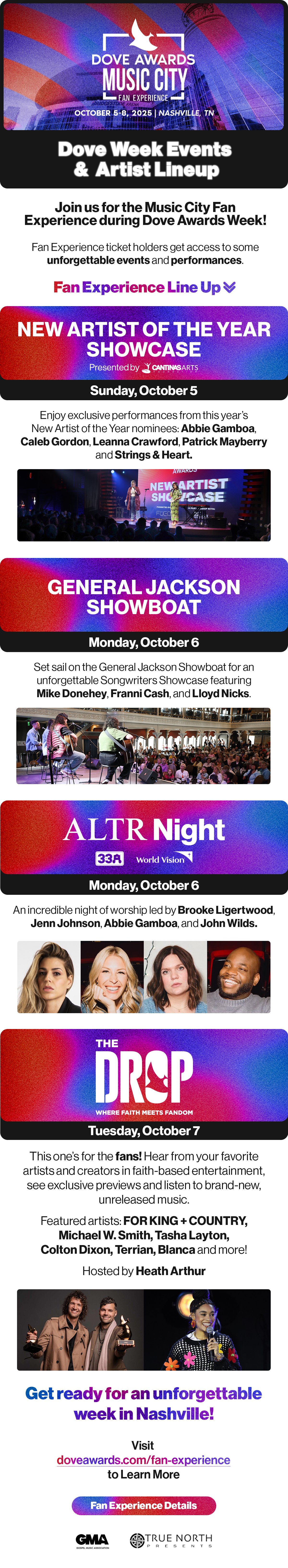 ✨ Fan Experience First Look: Dove Week Artists + Events